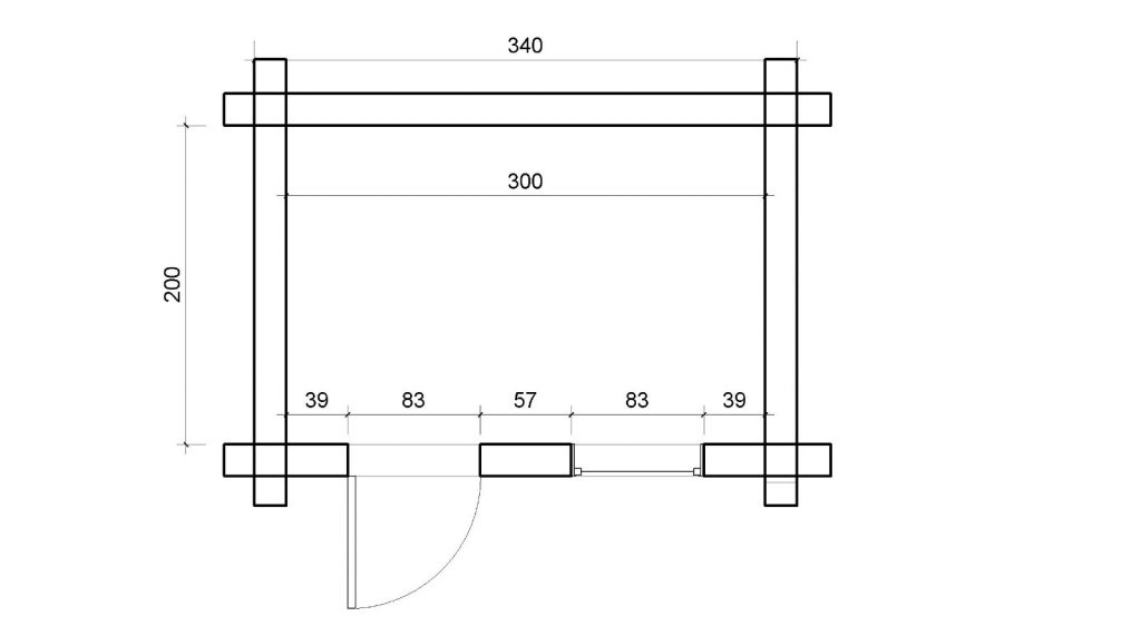 - Saunabänke: wie Skizze/Beispielbild; Verblendungen gerade; links keine Verblendung