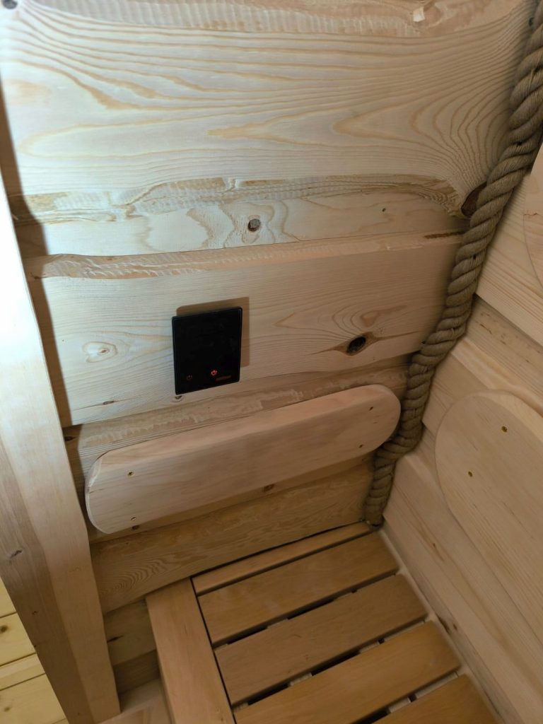 Der kompakte Raum ist schnell aufgeräumt: Selbst nach einer Banja mit viel Wasser, Birkenreisig oder Salzpeelings. Auch der Pflegeaufwand der Außensauna ist gering. Weniger Außenfläche bedeutet weniger Reinigung und weniger Holz, das regelmäßig lasiert werden muss.